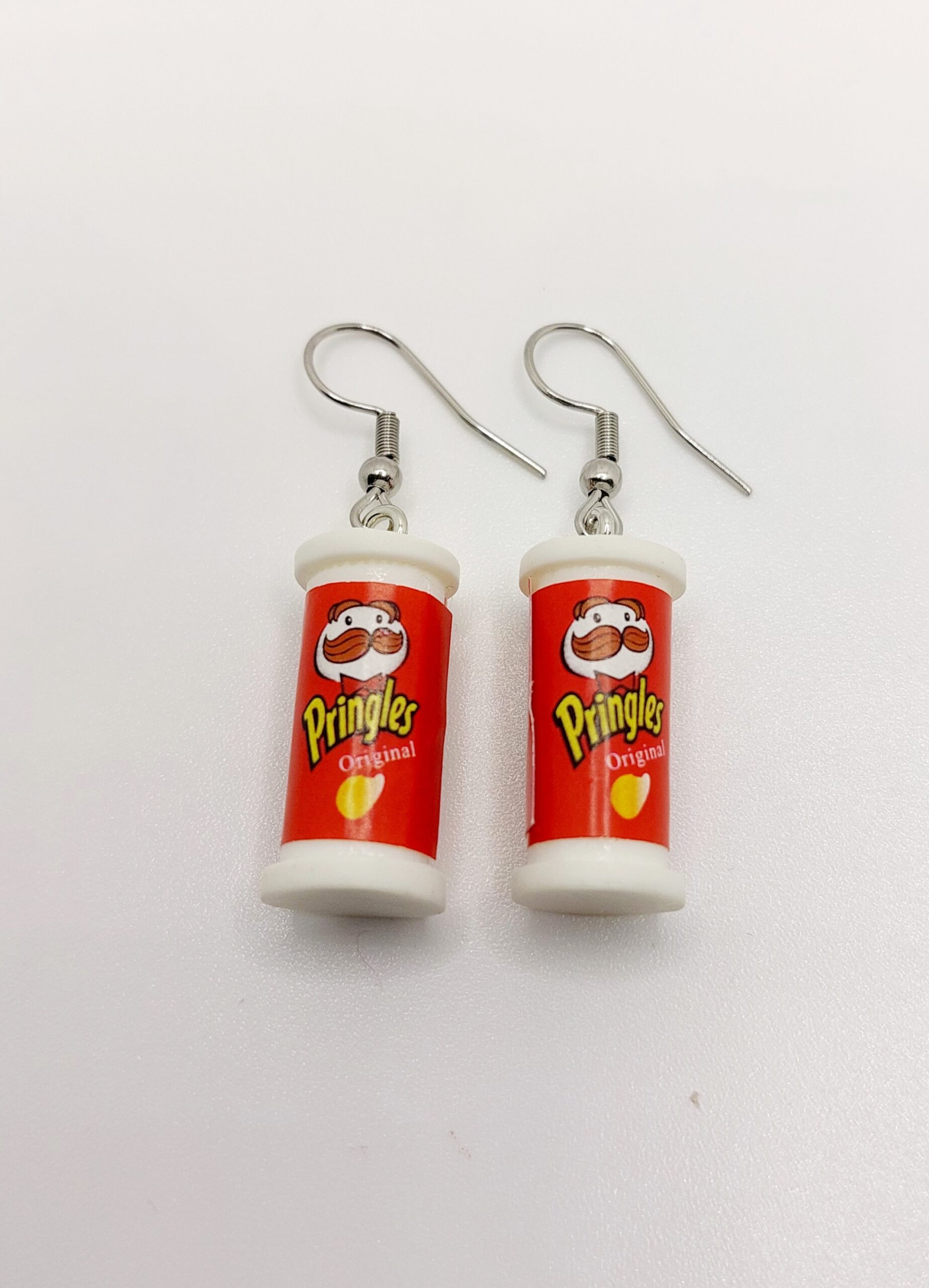 Estos originales pendientes simulan mini botes de patatas fritas con un diseño inspirado en el icónico envase de Pringles Original. Cada pieza está fabricada con materiales ligeros y resistentes, lo que garantiza su comodidad al llevarlos durante todo el día.