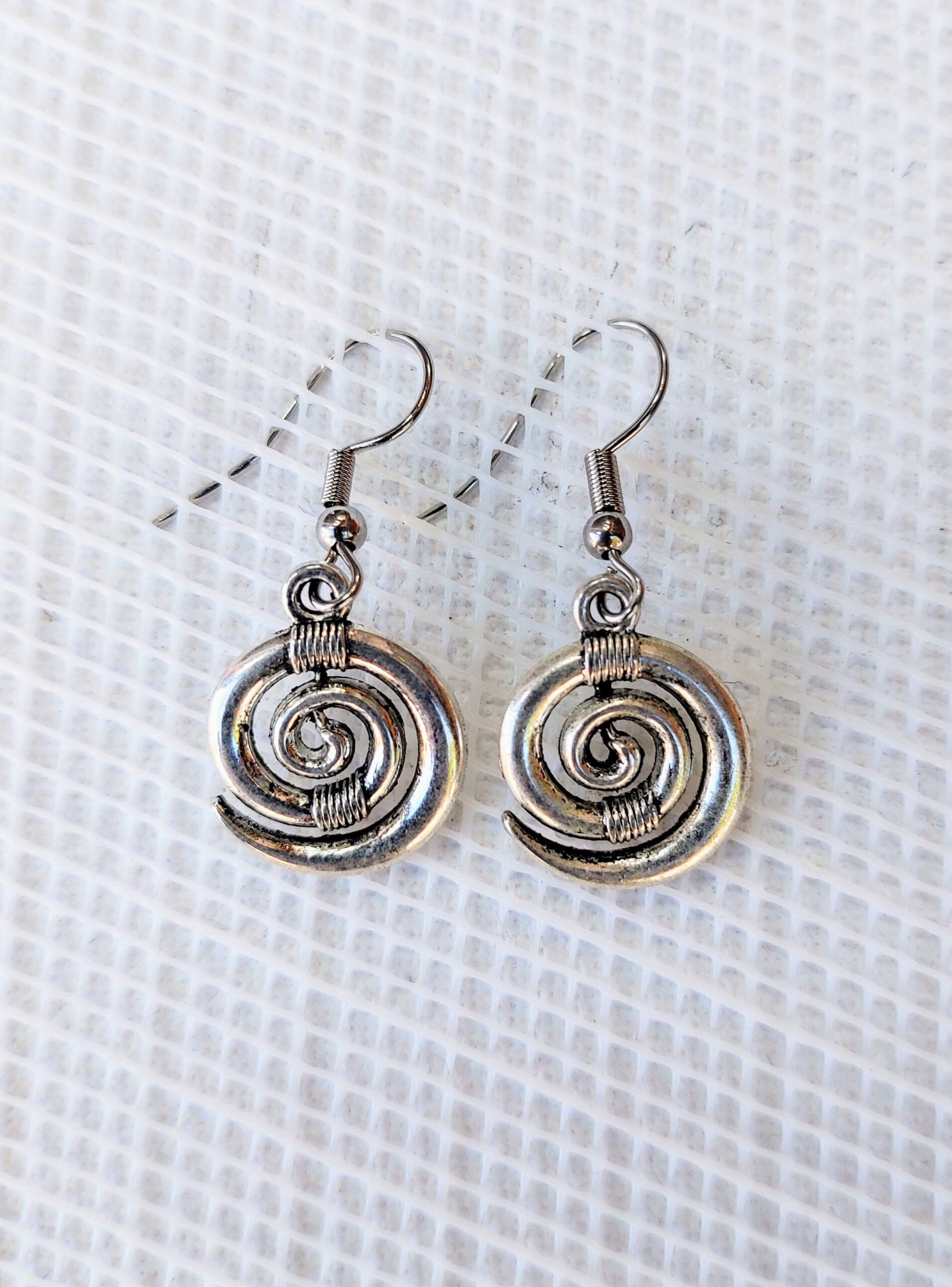 "Pendientes artesanales en forma de espiral elaborados con ZAMAk, una aleación resistente y libre de níquel, con un diseño elegante y atemporal. Cada pieza tiene un diámetro de 1,8 cm, combinando detalles cuidadosamente trabajados con ganchos de acero inoxidable, ideales para evitar alergias y garantizar su durabilidad. Perfectos para complementar cualquier estilo con un toque único y sofisticado."