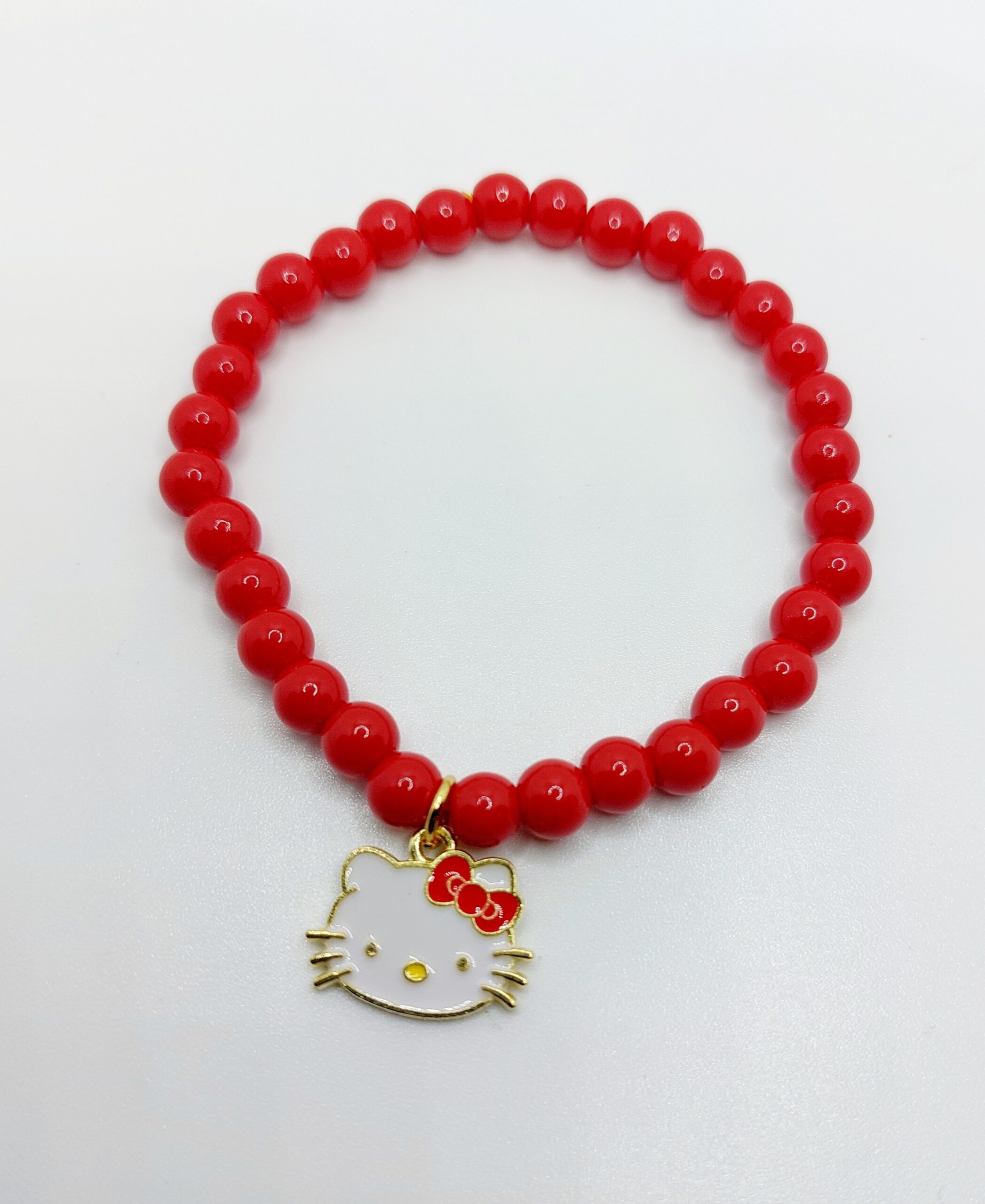 Pulsera de cristal rojo con gatita